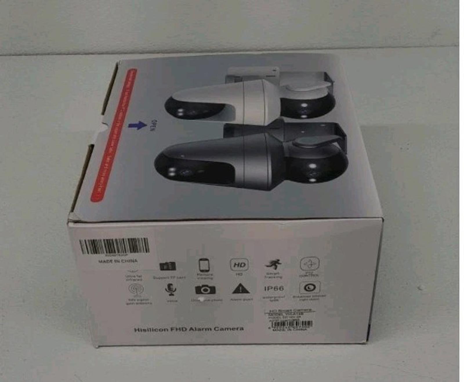 The dual lens security camera by Escanu is a wireless outdoor option for home surveillance, offering 2-way audio capabilities and a weather-resistant design. It is powered by lithium-ion batteries and has a maximum range of 40 feet. The camera can be controlled via an Android app and features MP4 video capture format with a resolution of 1296P, making it ideal for outdoor security needs. The package includes an instruction manual, mounting screws, a stand, and a solar panel for easy installation and maintenance.